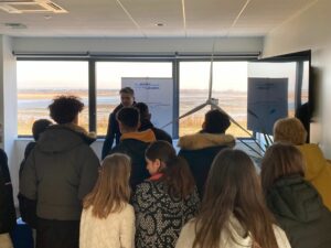 La base de maintenance du Parc éolien en mer du Calvados, installée au bout de la jetée Paul Émile Victor à Ouistreham, est bien plus qu’un site technique. C’est un lieu vivant d’échanges, de découverte et de sensibilisation. Depuis son inauguration en 2023, elle accueille régulièrement du grand public, des associations, ainsi que de nombreux scolaires venant comprendre comment se construit et fonctionne un parc éolien en mer, mais aussi comment les enjeux environnementaux sont pris en compte et comment un tel projet s’intègre dans un contexte de politique énergétique national.
