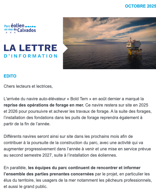 Les 17 et 18 novembre 2025, le Parc éolien en mer du Calvados a lancé une nouvelle campagne de pose […]